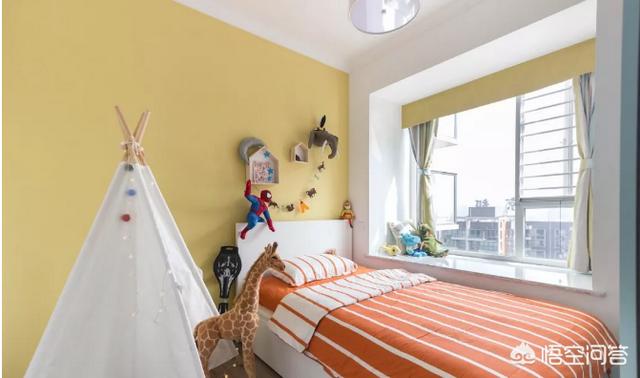 浅色感觉轻,深色感觉重。房间颜色应上浅下深过渡渐变。不妨把屋顶和墙壁刷成白色、米黄色等浅色系,墙裙加深一些,家具颜色更深一些。这样给人的感觉十分稳定、和谐。