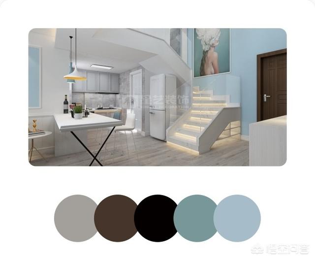 我们都知道小户型的房子多用浅色调可以让空间显得大一些,开阔一些,最常用的就是白色这样的中性色,采光较好的可以考虑使用一些高明度低纯度的冷色调,采光不好的空间建议墙面天花还是用白色比较靠谱一些。接下来分享两套小户型LOFT公寓设计案例,简单分析下配色: