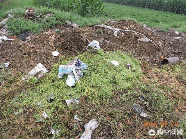 图1:因溃疡病导致大量近成熟期葡萄烂穗,只能摘除倒掉。