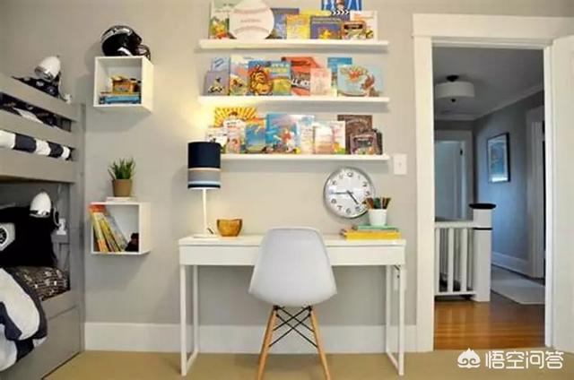 让孩子静下来心来读书的“书房”的标配,是“学习桌椅+台灯+软木板+时钟”,而且,尽量避免电视、电脑出现在书房里。