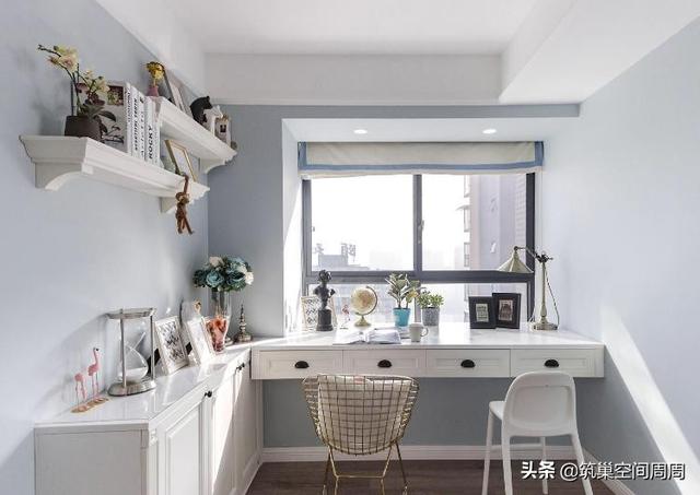 如果两者不能兼顾,可以选择靠窗边的位置摆放书桌,同时通过透光纱帘等进行改善。