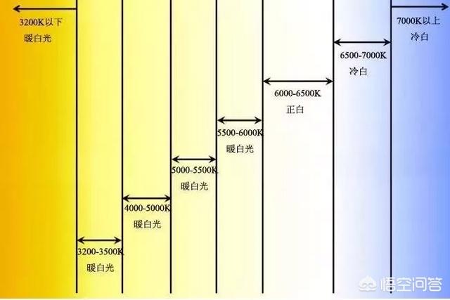 色温就是我们常挂在嘴边的白光和黄光。理论上说,色温在3000K-4000K是比较合理的,比较接近自然光的颜色,不会过白或过黄。