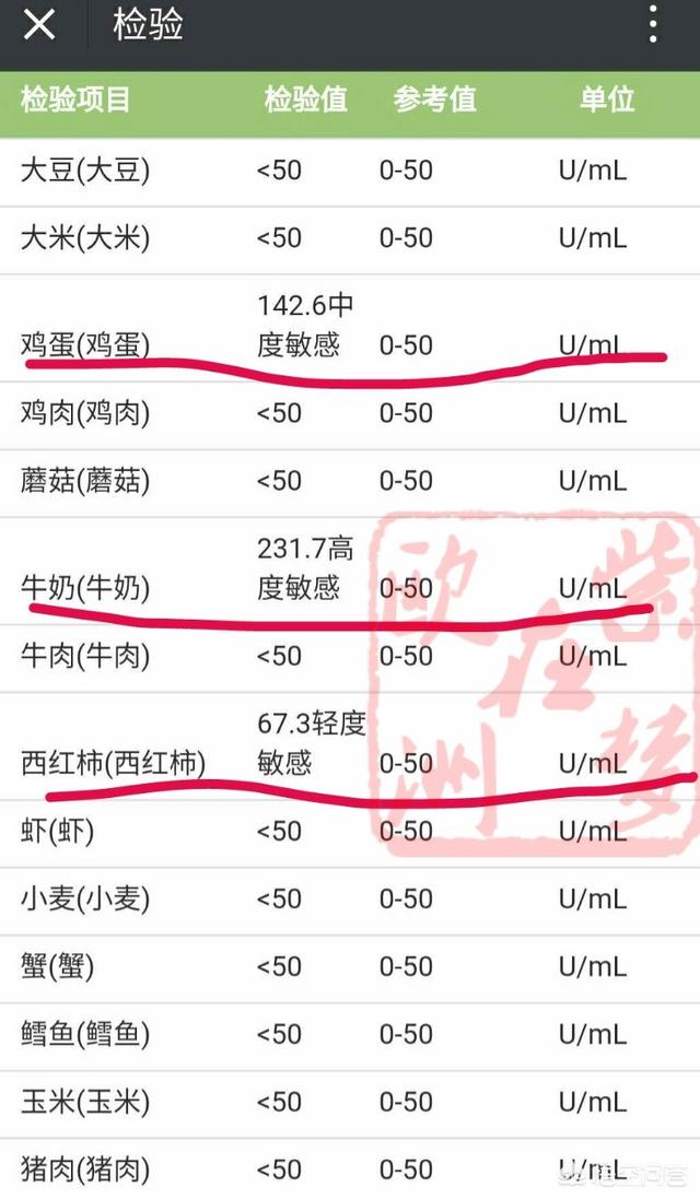 下图为儿童食物过敏筛查报告: