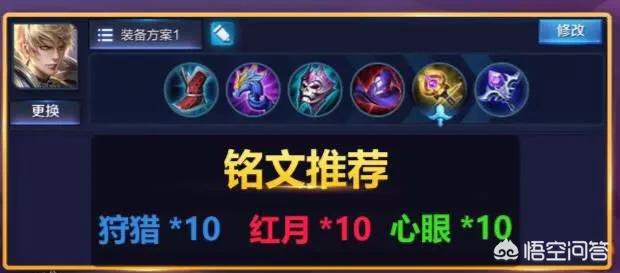 铭文上面建议使用狩猎(移动速度+1%、攻击速度+1%)、怜悯(冷却+1%)和圣人(法术攻击+5.3)