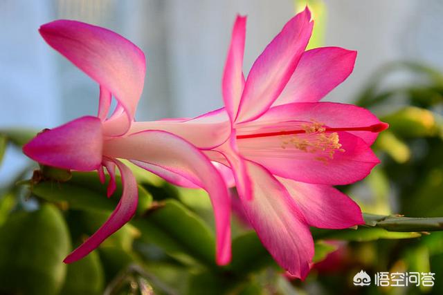 蟹爪兰,又叫圣诞仙人掌,属于仙人掌科蟹爪兰属,原产于巴西,九月到第二年的四月份是花期。