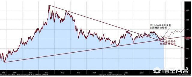 (红色曲线:金价走势图;红色虚线:2019年金价展望。)