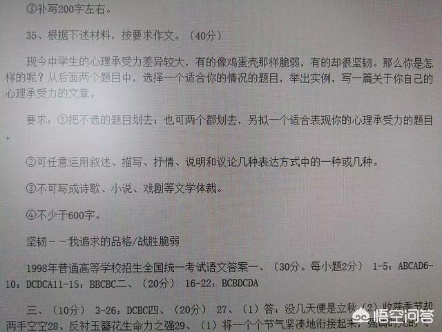 因为当场考试的时候,我看错时间了,或者说是我理解错了时间。1998.7.7津,晴,(考前一场雨)。第一场是语文,前面精心作答,认真书写。监考老师:“现在距离考试结束还有15分钟,没有涂写答题卡的同学抓紧时间”