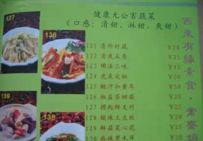 广州寺庙多,素菜店不少,这家店的素菜做得挺不错,走完寺庙可以到西来吃吃素菜。素菜的外形会摆成广州的粤菜一样,但都不是肉,体验了厨师的精心设计和好厨艺。附上菜单给各位吃货参考参考