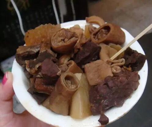 牛杂绝对是老广最爱,,萝卜“酥香”,牛杂“软嫩”,再浇上“特制”的豆豉酱和辣椒酱,真是“无法形容”的美味。林林牛杂都算得上系广州噶老字号咯,味道相当5错,有时候还可以看见外国人在那吃的津津有味的呢。在上下九,这个店做了很久的,也是最多人气的牛杂店。老远就可以闻到香味了。