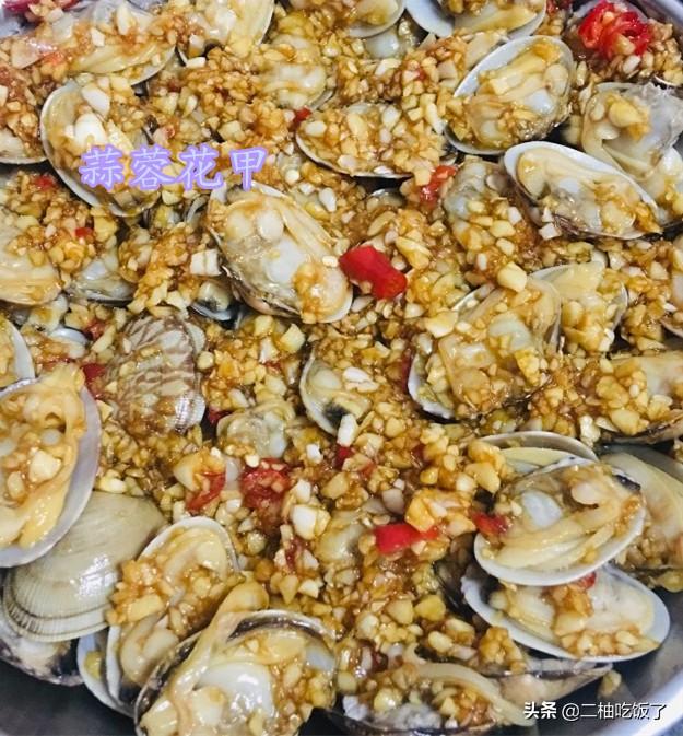 2.清蒸花甲,花甲装入盘中上蒸锅,锅开后5-8分钟即可,也可在蒸熟花甲的基础上,花甲盘上放入少量蒜末和切碎的小干辣椒,起锅烧花生油,油热后淋到蒜末小干辣椒碎上。