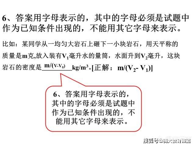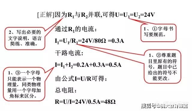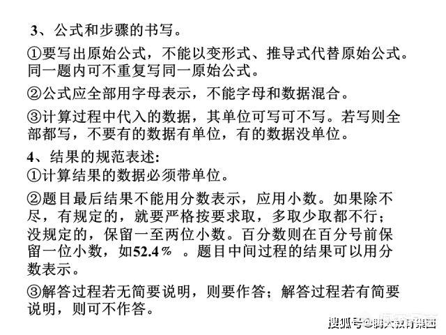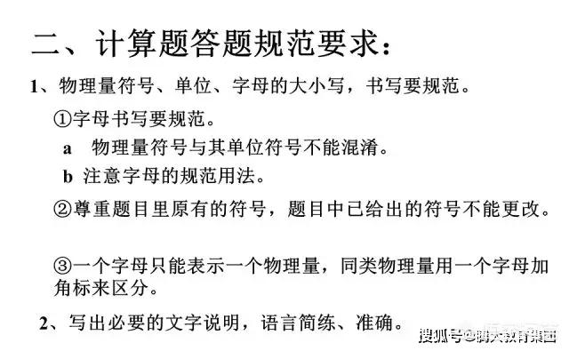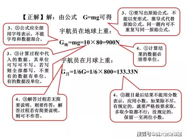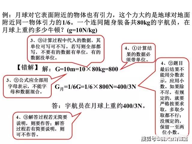 (2)解题过程,对于是否写已知物哩量和求哪些量没有具体要求,必须写明解,以及必要的文字说明,有理有据,计算过程必须写出原始公式、变形公式、代入数据单位、计算结果和答。过程中切忌跳步骤。