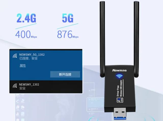 不过一分钱一分货,购买无线网卡时,最好买一种双频的它。因为它支持2.4GHz和5GHz的转换速率,让5GHz的下载速率达到837Mbps,2.4GHz的最高速率达到400Mbps。不过这种无线网卡需要自己初步懂得操作电脑来完成驱动安装,随便插入电脑USB接口即可完成任务。