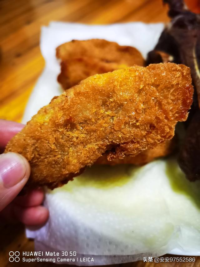 麻烦一点的就是一层生粉一层蛋液一层面包糠,然后下锅炸,很脆。有时候我范懒的话就用红薯粉搅拌一下下锅炸,也很脆,我经常炸东西,小孩很爱吃。前两张是加红薯粉炸的鳗鱼和鸡排,后面三张是加面包糠炸的鱼排、鸡翅和龙利鱼。有空可以两种方法都试试,我觉得都很脆都好吃