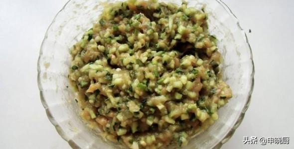 另外一种方法就是,在调拌馅料加入食盐调味前,加入食用油搅拌均匀,锁住黄瓜中的水分,在加入食盐调味即可,这种做法黄瓜的口感较清脆。