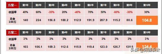 同时我们购买的理财险,我们要知道,是否有复利,这点非常重要!!在有复利的情况下哪怕我们的收益率很低,但是经过一段时间后通过复利的方式我们的收益率是高的非常吓人的。下面是一张固定收益率和复利收益率的收益表,可以感受一下