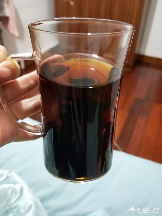 我杯子里的就是一款老普洱,在家里我就简单的喝,简单的泡。