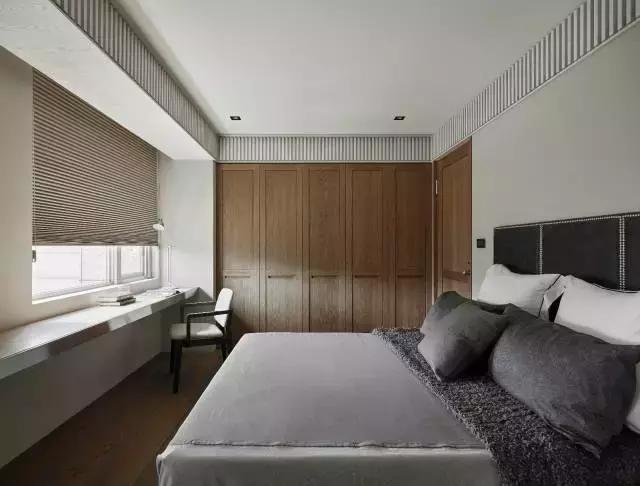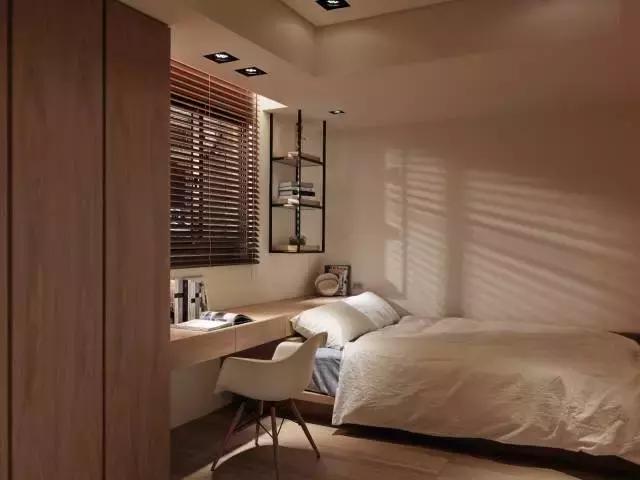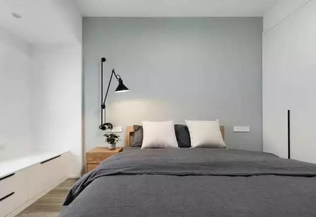 想要打造一个简约的卧室,整体色调的选择也是至关重要的,一般为白、灰、黑、浅米、卡其、原木等低饱和度色调,男生的卧室一般会以原木色、冷灰色为主色,女生一般比较喜欢浅米、白、卡其等色。
