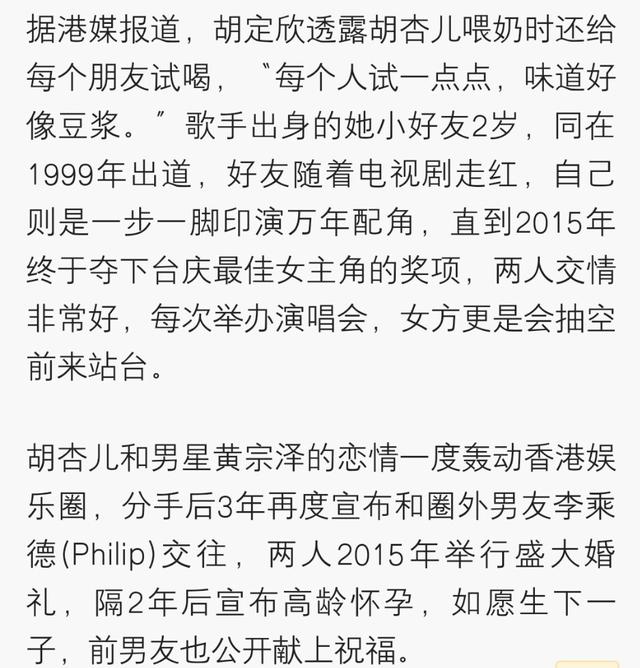 胡定欣爆出,胡杏儿给闺蜜团给母乳,称味道像豆浆。