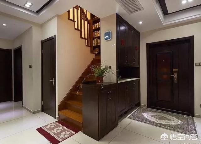 还有这种一边是鞋柜一边是洗手间,可以说空间利用的很到位了吧?楼梯临近厨房或餐厅,可以做成冰箱。