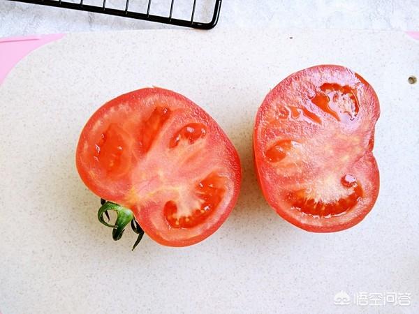 2. 准备一个西红柿,用开水烫一下,然后撕去西红柿外皮。有的朋友燃气灶火上烤一下,也可轻松撕去西红柿外皮。
