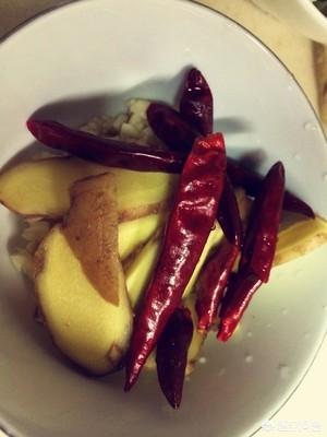 葱、姜、蒜、花椒、干红辣椒、酱油、油、盐、十三香、鸡精