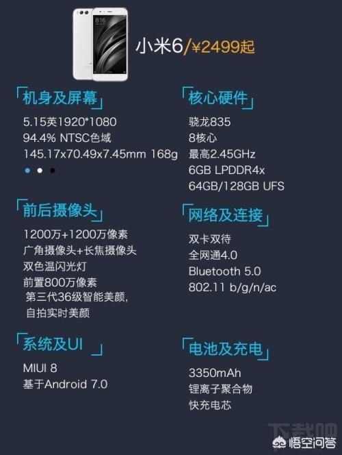 小米6和小米mix2,小米6和小米mix2目前价格都有所下降。小米64+64/2099,6+64/2499,6+128/2899。配置如下