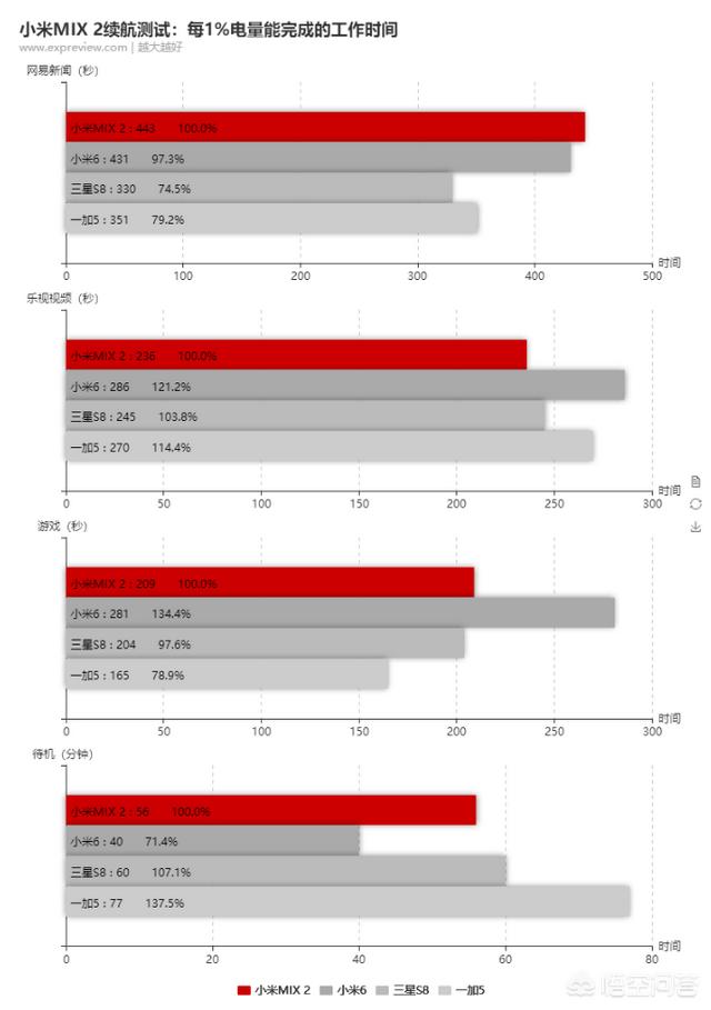 电池容量方面,小米6为3350mAh,而小米MIX2为3400mAh,根据我对他们的续航测试可以看到,小米MIX2虽然屏幕比小米6大,但是在看新闻和待机上的续航表现都比小米6好,不过在看视频和玩游戏时续航表现反而不如小米6。