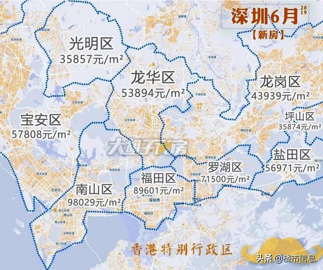 从上面的粗略计算,我们可以看到该位IC设计工程师5年到手收入182.66w。看了IC设计工程师在深圳的五年收入,我们就不得不说讨论一下深圳的房价。蛙妹在网上搜索了一下,得到深圳最新各个区的房均价地图。