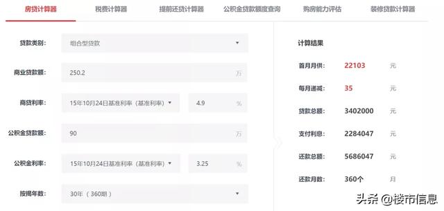 也就是说,在你是深圳户口,且是首次购房的情况下,购买90平的房子,最低需要首付486*0.3=145.8w,剩下的340.2w将贷款还房贷。假设我们选择的公积金+商业贷款组合还款,按照深圳的政策,家庭首套房,公积金最多可贷款90w(单身最多可贷款50w),选择还款时间是30年。