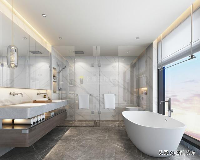主卫空间宽敞,一眼望去,就是妥妥的现代简约风无疑,空间布局上做了必要的干湿分离。灰白为主色调设计会显得整体单调无趣?不存在的,因为除了多处的灯带设计,加上浴缸边上的落地窗,整个浴室真的不要太敞亮和上档次了。
