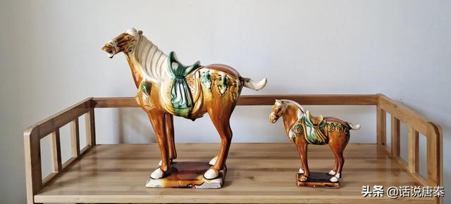 唐三彩的显著代表是随葬陶俑,其形体丰富,从数寸高的动物、玩具到武士和辟邪,以及官员、仆从、舞女、乐师等,简直就是唐代生动缩影。