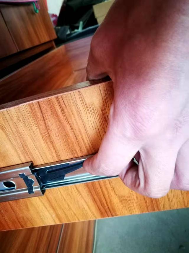 现在观察,一种情况是抽屉上的卡槽是不是没有顶到着抽屉面,另一种情况看看轨道是不是超出了柜体侧板的边沿。