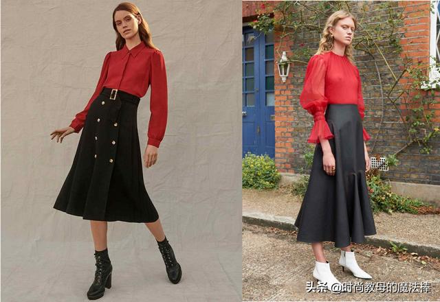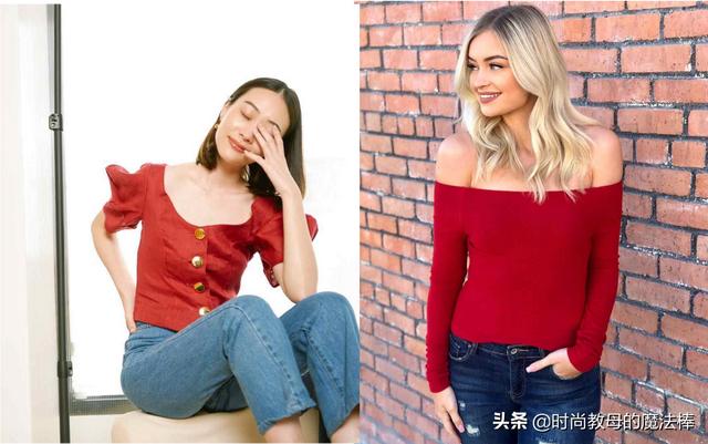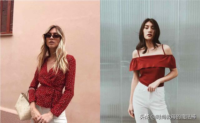 红色收腰小衫搭配不同的类型的单品,会呈现不同的风格。
