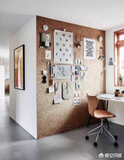 书房,软木既可以起到装饰作用,也可以实际使用功能,由于密度低,可以起到隔音的作用。