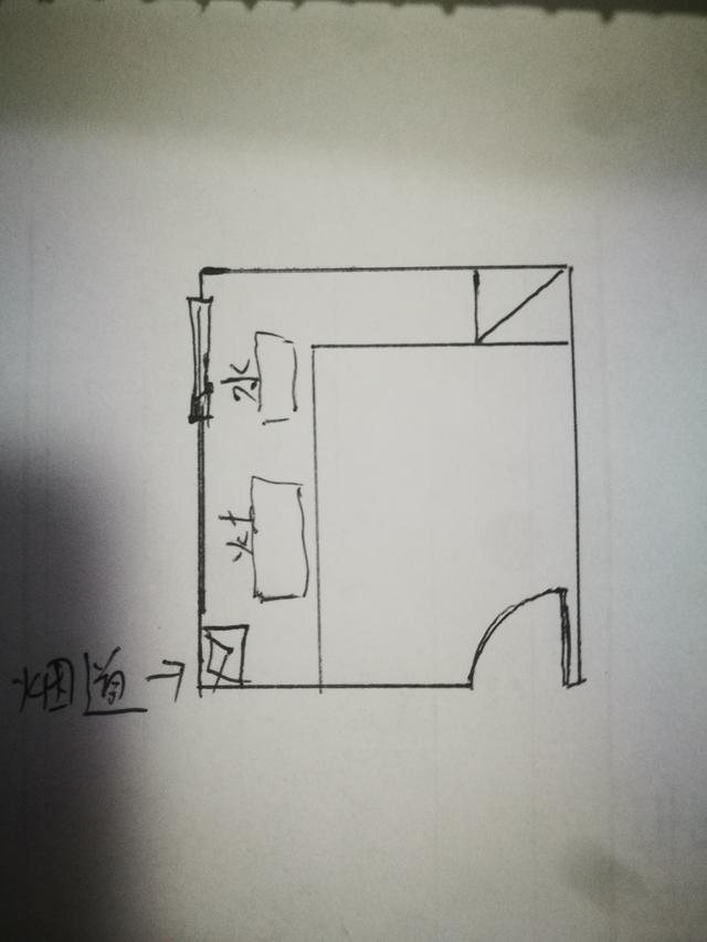 基于厨房烟道位置不可改动,炉灶距离烟道就近原则,我建议你可以这样做。
