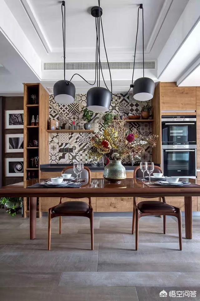 现代风格客餐厅,题主计划灰色地砖搭配胡桃木家具,