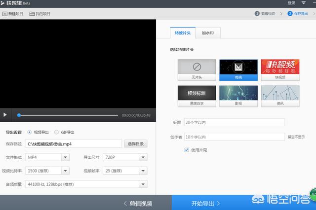 5、编辑视频信息,如:视频标题、创作者,添加片头、片尾、水印等。