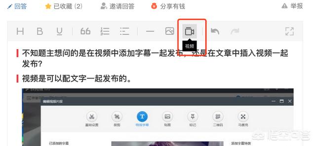 不知题主想问的是在视频中添加字幕一起发布,还是在文章中插入视频一起发布?