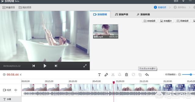 1、打开“快剪辑”软件,添加视频素材。