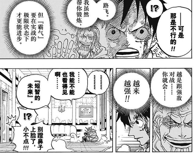 2.霸王色霸气提升。这个在红发展示物理伤害后,我们也相信路飞可以达到这个级别;