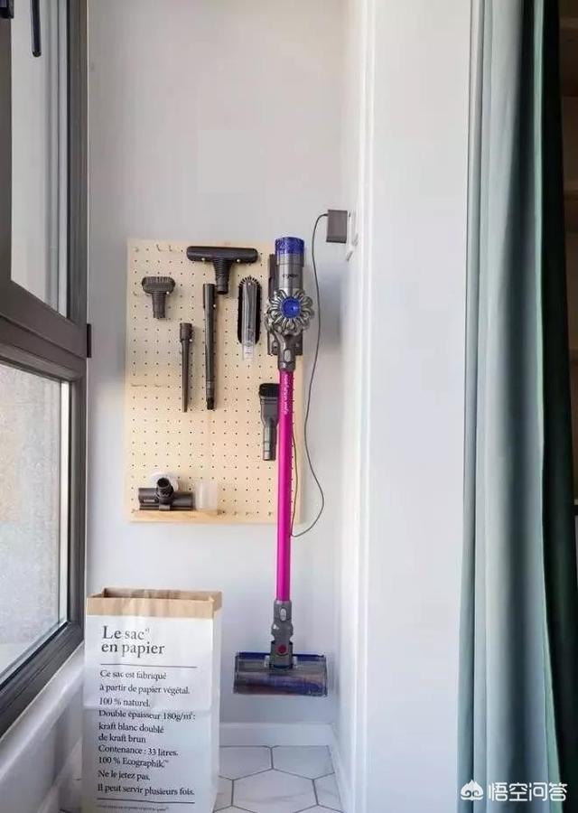 利用阳台边角收纳吸尘器,一个洞洞板有时候比柜子好用。