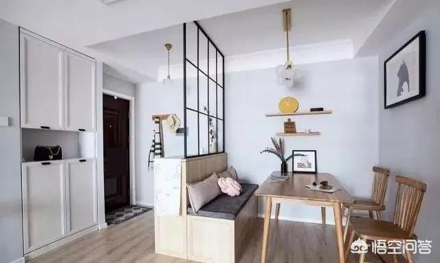 玄关隔断和餐厅互相借用空间,餐边柜也能跟玄关柜合二为一。