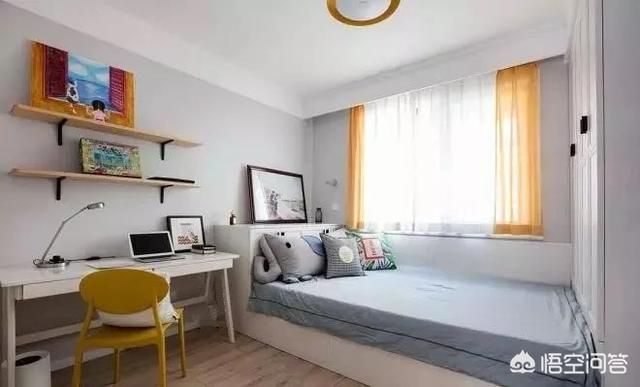 儿童房床靠墙,担心环保性不做榻榻米也能留出玩耍的区域。