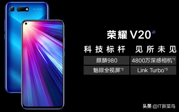 1、荣耀V20 ,麒麟980处理器,8+128G,2018年12月上市,目前售价约1900左右。