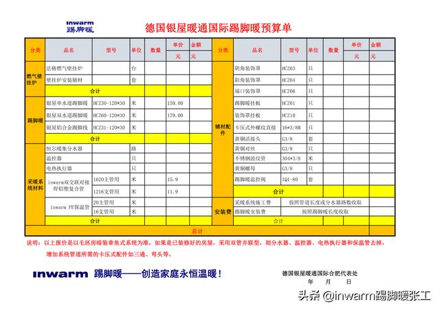 (踢脚线地暖采暖系统预算单)