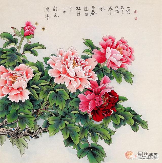 牡丹象征着富贵,从古至今文人墨客对牡丹的赞美更是不计其数。这幅牡丹作品中还画有两只鸟儿,增添了“鸟语花香”之感。在风水上,牡丹盛开胜似佛手招财,其雍容华贵的姿态,能给家人带来福禄永驻、招财辟邪之好运,一生有着享不尽的荣华富贵。