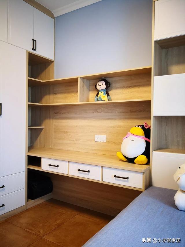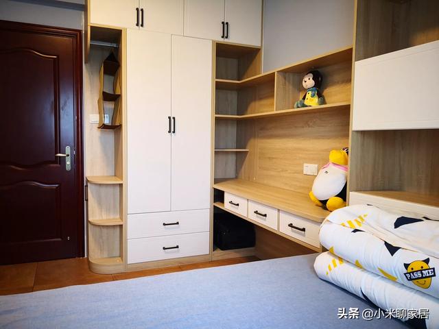 我家儿童房就是很小,但是我实现了床+书柜+书桌+衣柜的整合,我是通过定制类产品实现的,原来空间小,但是效果看起来房间很大,实用性很高,