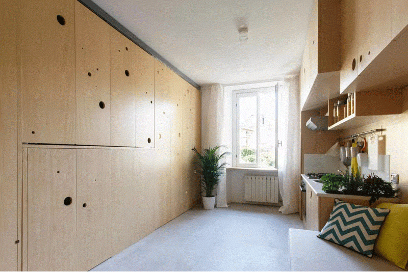 多出一间房有隐私:按照普通的抬高床装护栏的方法,如果不是单独一间房,那休息的区域就很没有隐私性,家里来客也略显尴尬,现在在抬高的床铺上装上折叠门,不用单独砌墙做隔断,也能单独包间房当卧室,关上门后完全看不出里面还隐藏有卧室,对于小户型不要太省空间。