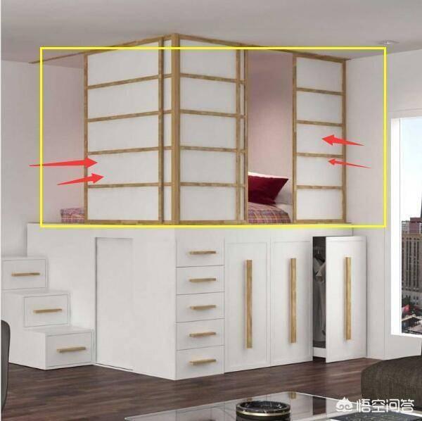 例子1:床抬高,床上装折叠门,省地通风透气有隐私