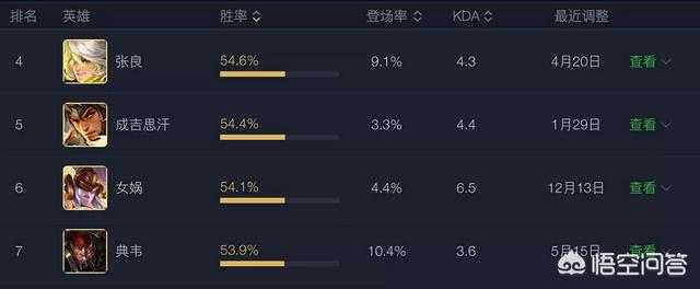 典韦三天前胜率48.3%,更新过后第三天就上升到胜率榜第七名53.9%,这个上升速度是非常恐怖,原来我以为要一个星期左右上升到50%。